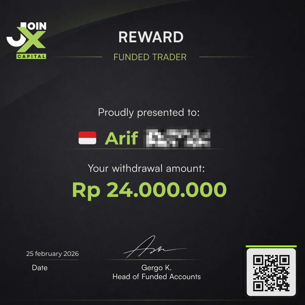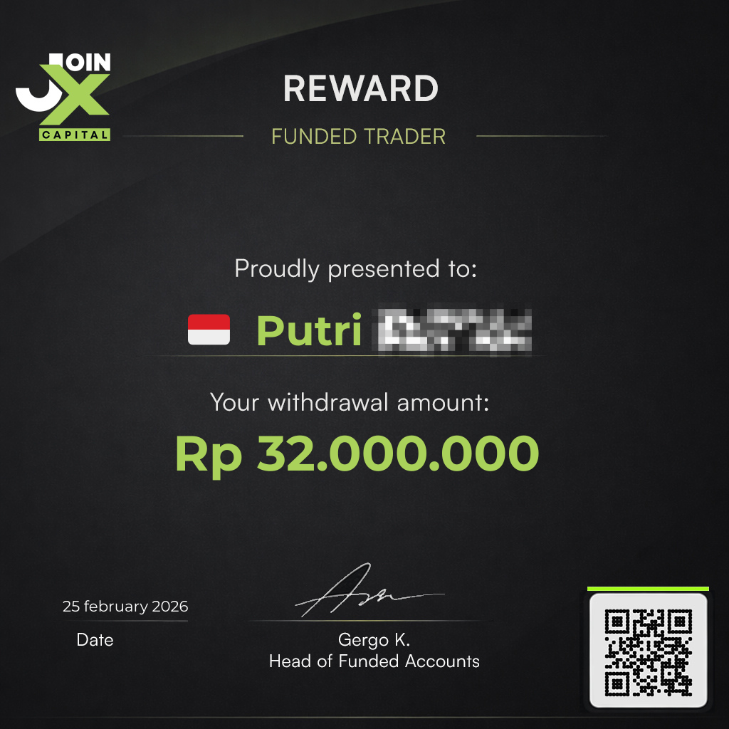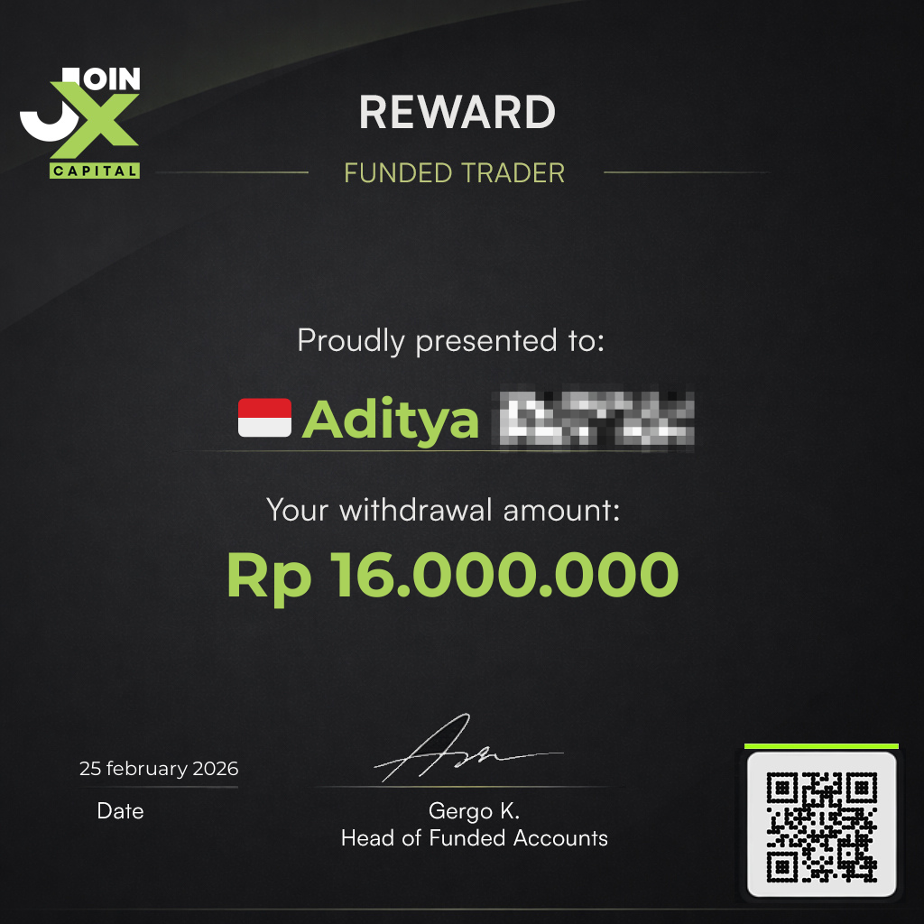 JoinX Capital is backing talented traders worldwide. If you have the skills - this is your opportunity. Follow the rules, pass the challenge, get funded up to Rp 80 Million in trading power per each challenge.